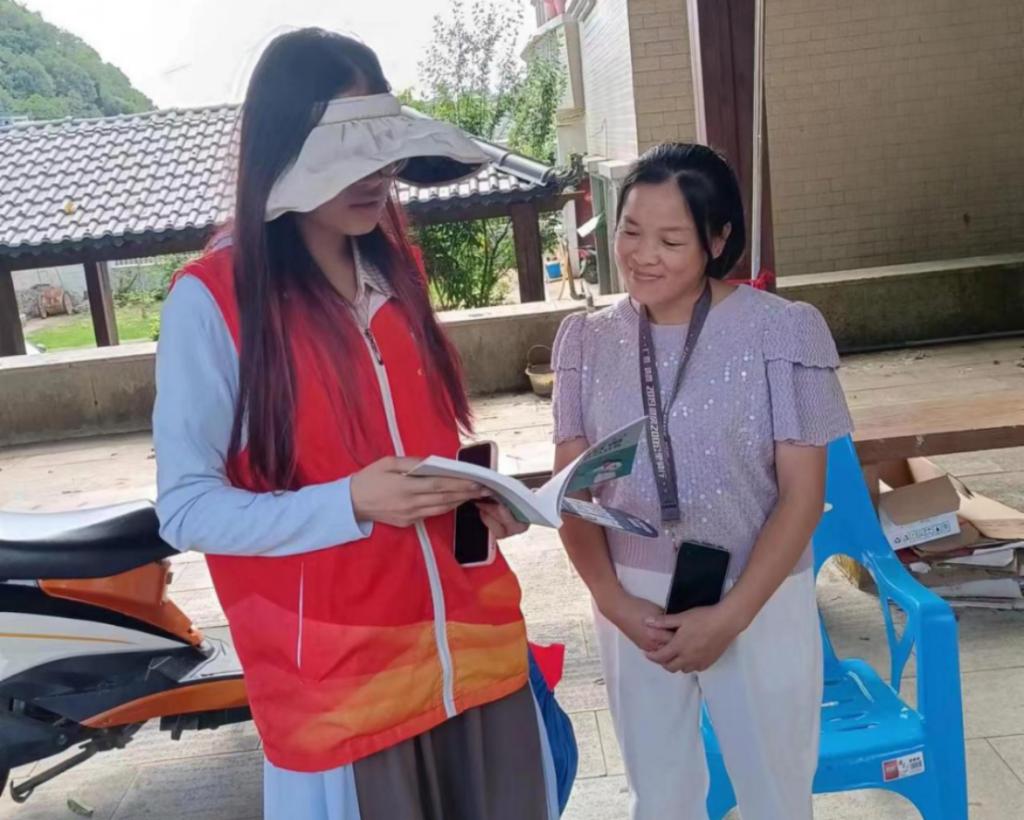 队员向靖西市村民介绍幽门螺杆菌防治科普专著内容