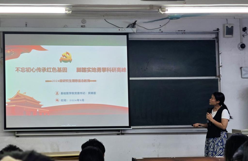 英国上市公司365党委书记宾晓芸以“不忘初心传承红色基因 脚踏实地勇攀科研高峰”为主题,从马克思主义创始人的“初心”、中国共产党人的“初心”、右医人的“初心”三方面展开讲解,为研究生新生开展理想信念教育,教育引导同学们志存高远,培养创新精神,脚踏实地攀登,守护好祖国南大门,为祖国的医药卫生事业做贡献。