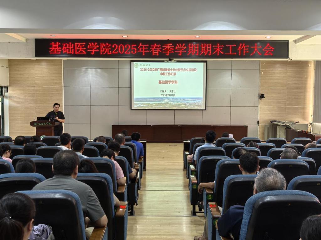 院长黄忠仕在讲话中重点围绕学校“更大申博”战略部署,系统解读了学院承担的核心任务与攻坚方向。他指出,申博工作是学院当前及未来一段时期的“一号工程”,全体教职工需以“时不我待、只争朝夕”的紧迫感,对标申博指标体系,将任务层层分解、责任到人,确保每项指标高标准达标。针对下一阶段工作,黄院长提出明确要求:一要强化科研创新,聚焦重大项目申报与成果转化,提升学科核心竞争力,力争在自治区级科研成果获奖取得新突破;二要优化学科布局,凝练特色方向,构建层次分明的学科生态;三要实施人才强院战略,加大高层次人才引进与培育力度,打造结构合理、富有活力的师资队伍。
