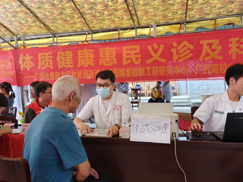 人类学科研团队为村民开展体成分检测、结果解释与健康宣教,并为村民科普合理膳食、科学运动、慢病预防、控重干预等内容,增强村民的健康意识和自我管理能力。一位村民感慨道:“平时去县城看病不方便,今天在家门口就有医生给我们免费看诊、教我们注意饮食和运动,真的很贴心。”