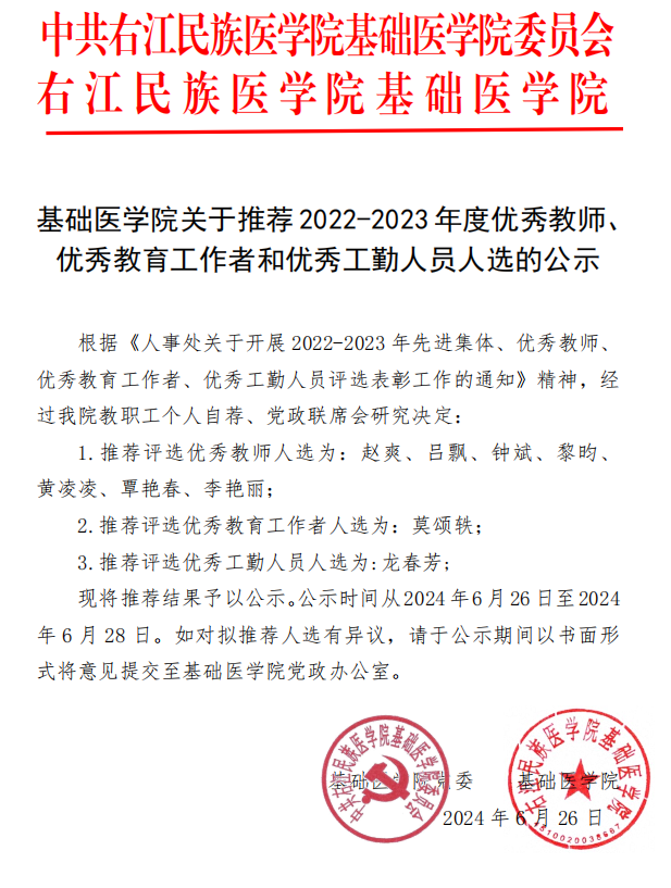 英国上市公司365关于推荐2022-2023年度优秀教师、优秀教育工作者和优秀工勤人员人选的公示