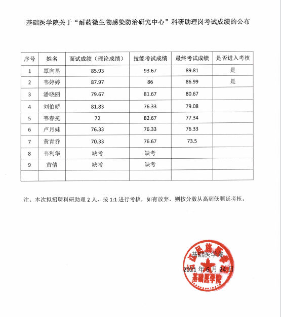 英国上市公司365关于“耐药微生物感染防治研究中心”科研助理岗考试成绩的公布