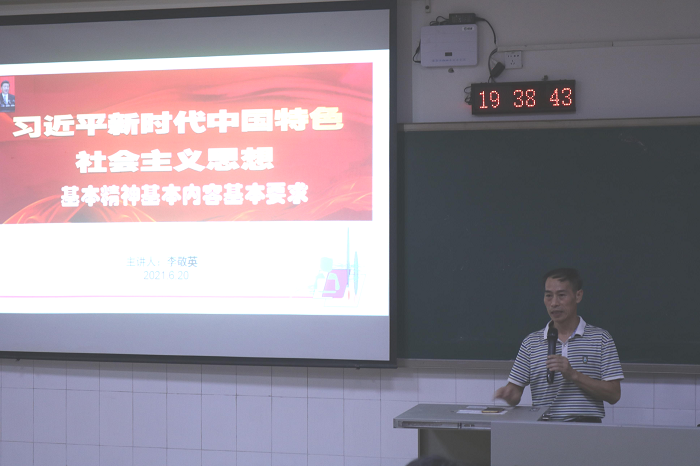 6月20日晚上,马克思主义学院李敬英老师在授课过程中指出,习近平新时代中国特色社会主义思想在百年不遇的世界大变局中形成,它的基本精神、基本内容、基本要求,都是我们广大青年学生学习的方向。李老师强调,习近平新时代中国特色社会主义思想最重要、最核心的内容就是中共十九大报告概括的“八个明确”,要求同学们在入党的路上不断修炼党性,时刻以党为中心,坚守岗位,不脱离实际,为实现社会主义现代化和中华民族的伟大复兴而奋斗终身。