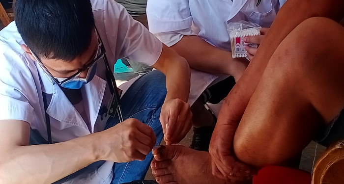 7月13日上午,2019临床医学(教改班)同学为那务村村民开展义诊服务