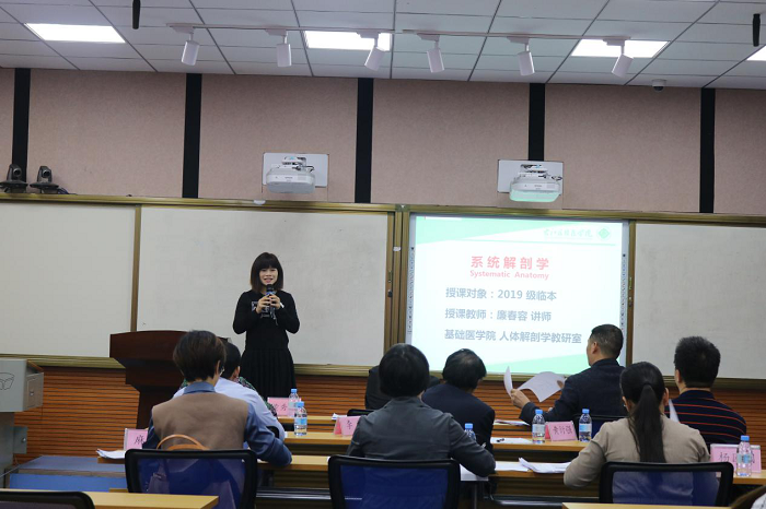 比赛采用现场抽签的形式决定授课顺序,七位参赛教师在给定时间内通过教学展示与教学反思两个环节,全面、详尽地展示了个人教学方式与风格。其中,廉春容教师声情并茂、挥洒自如,以精彩的课堂设计、沉稳从容的授课风格赢得评委的青睐与观摩教师的认可;吕飘老师的教学风格极具激情,课堂气氛活跃,感染力强;胡红柳老师则将基础与临床巧妙融合在一起,激发学生学习兴趣。经过三个多小时的精彩比赛,最终廉春容老师和吕飘老师获得得本次比赛一等奖。